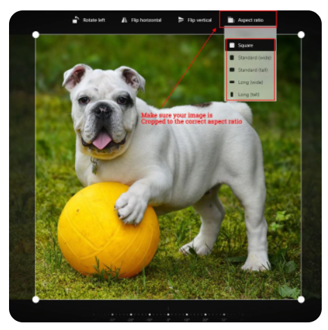 - Use our advanced upload tool to crop your image to suit our canvas sizes. Choose from Square (1:1), Standard (3:4) or Long (9:16). You won't have to do this if your photo is already one of the above aspect ratios.
